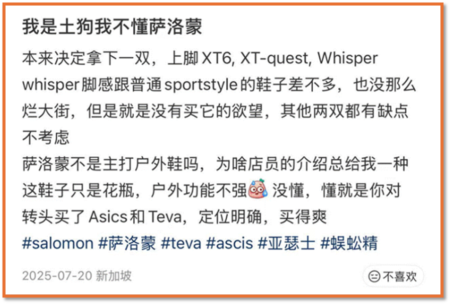这位用户就想,“还不如转头买Asics和Teva,定位明确,买得爽。”