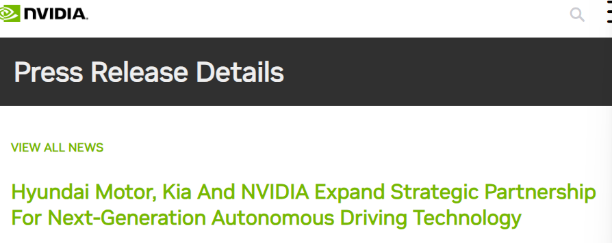 作为深化合作的一部分,现代汽车计划将英伟达辅助驾驶技术集成至部分车型中,为其提供 L2 及以上的辅助驾驶系统,进一步提升安全性能与智能驾驶能力。