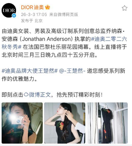 王楚然本次参加时装周看秀,一落地,迪奥官方在巴黎秋冬大秀前直接宣布王楚然为品牌大使,打破高奢品牌需 " 品牌挚友→大使 " 阶梯晋升的常规路径,被业内视为 " 有效播剧红利 " 的典型体现。
